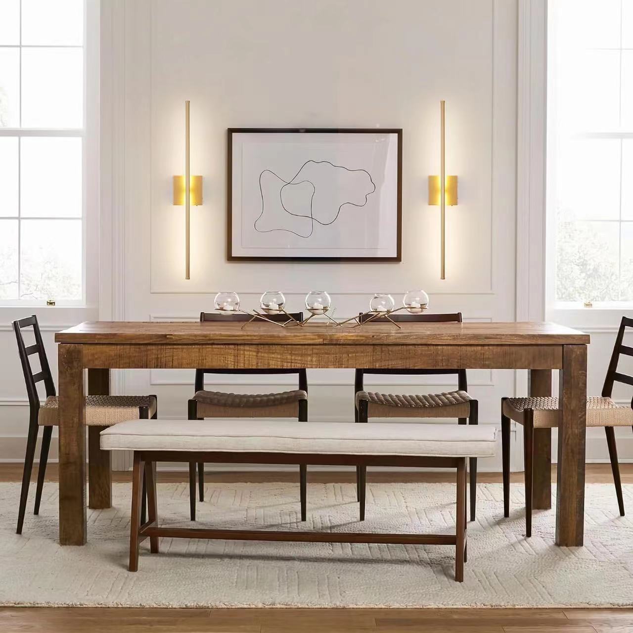 Denne moderne lineære væglampe bringer balance og raffinement til ethvert interiør. Med sin minimalistiske silhuet og bløde, diffuse glød fremhæver den dine vægge med et strejf af arkitektonisk ynde. Den er fremstillet af førsteklasses metal og matteret glas og giver langvarig kvalitet og et varmt, beroligende lys, der forvandler spisestuer, soveværelser og gange til elegante tilflugtssteder.