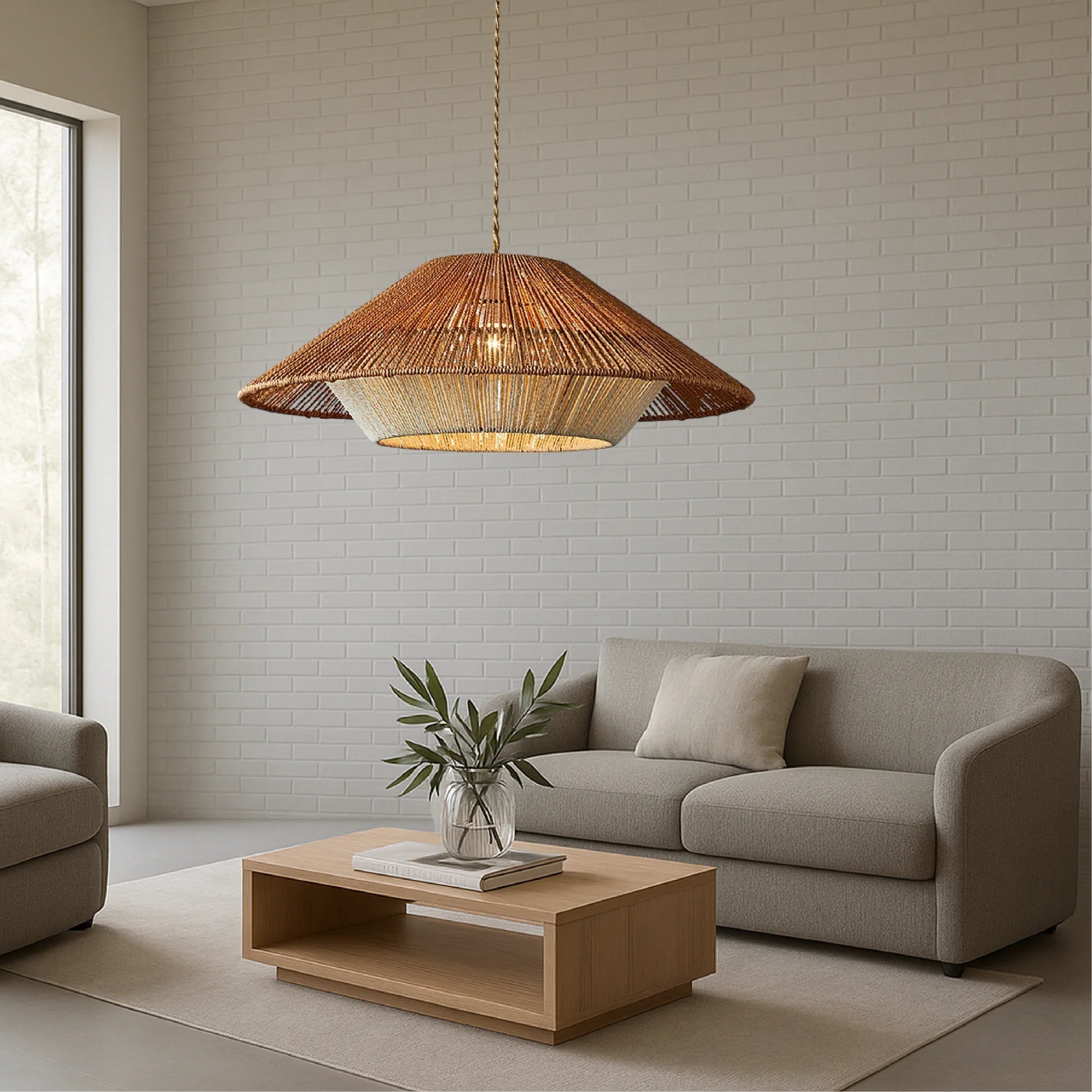 Bamboo Woven Pendant Light er designet til at afgive en varm, behagelig glød, der fylder rummet uden at være hård ved øjnene. Uanset om du nyder middagen ved køkkenbordet eller slapper af i soveværelset, skaber denne lampe den perfekte atmosfære.