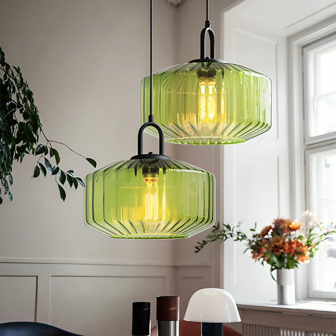 Colored Glass Pendant Light er designet til at afgive en varm, behagelig glød, der fylder rummet uden at være hård ved øjnene. Uanset om du nyder middagen ved køkkenbordet eller slapper af i soveværelset, skaber denne lampe den perfekte atmosfære.