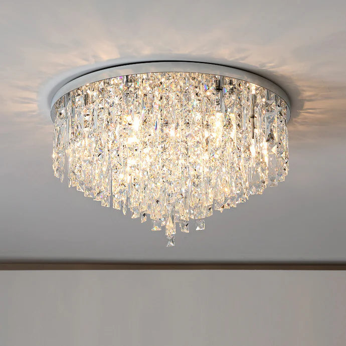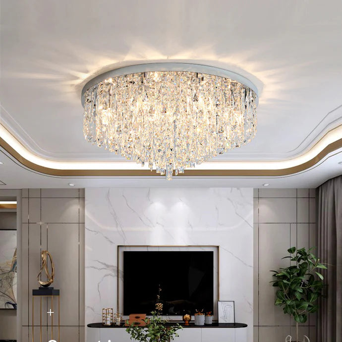 Crystal Ceiling Chandelier er designet til at afgive en varm, behagelig glød, der fylder rummet uden at være hård ved øjnene. Uanset om du nyder middagen ved køkkenbordet eller slapper af i soveværelset, skaber denne lampe den perfekte atmosfære.