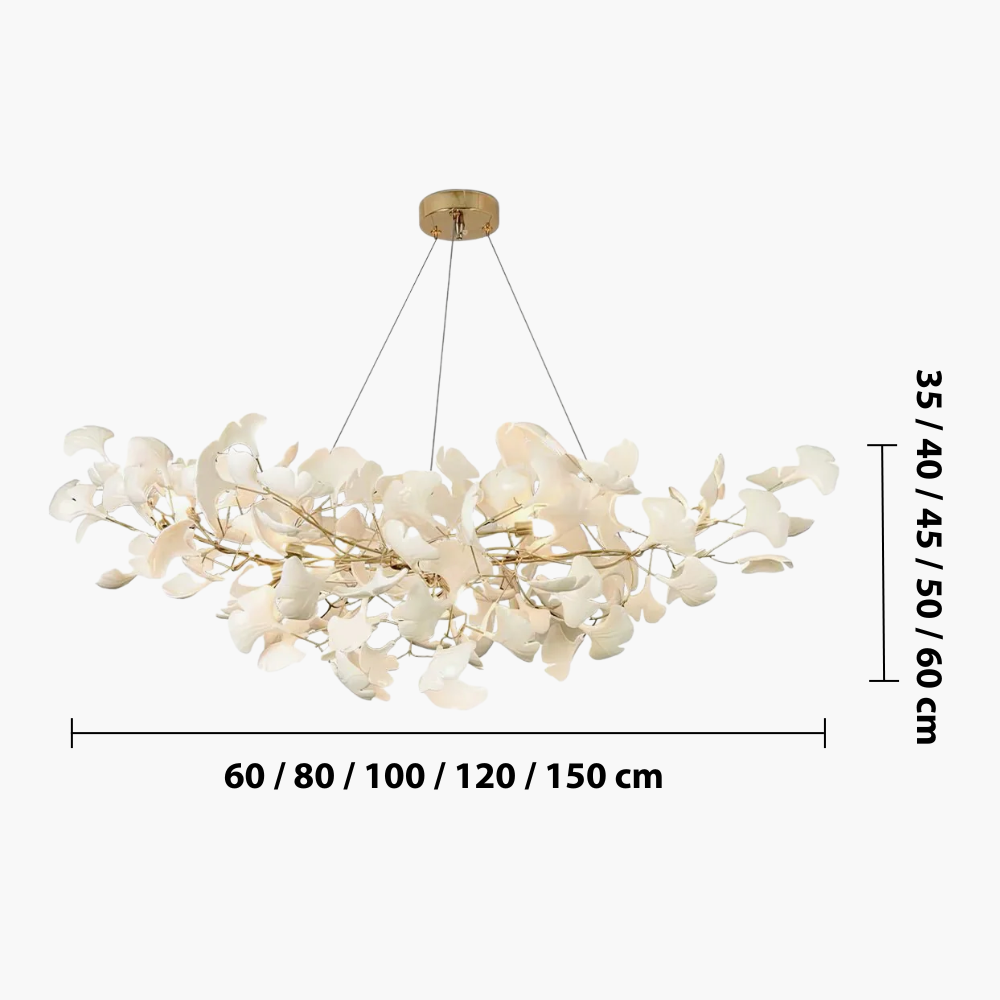 Gingko Chandelier er designet til at afgive en varm, behagelig glød, der fylder rummet uden at være hård ved øjnene. Uanset om du nyder middagen ved køkkenbordet eller slapper af i soveværelset, skaber denne lampe den perfekte atmosfære.