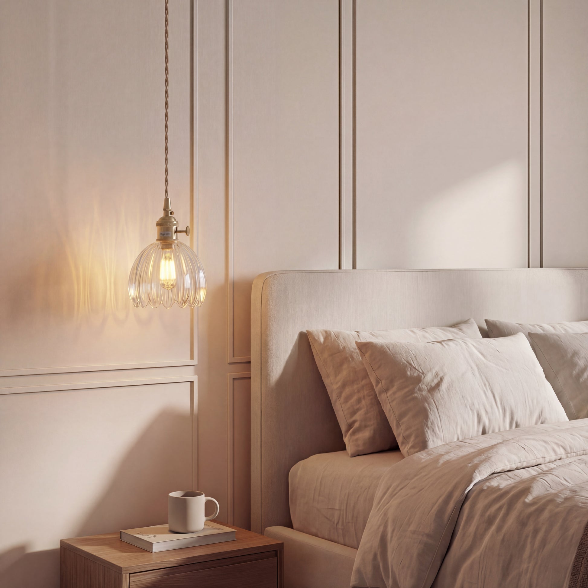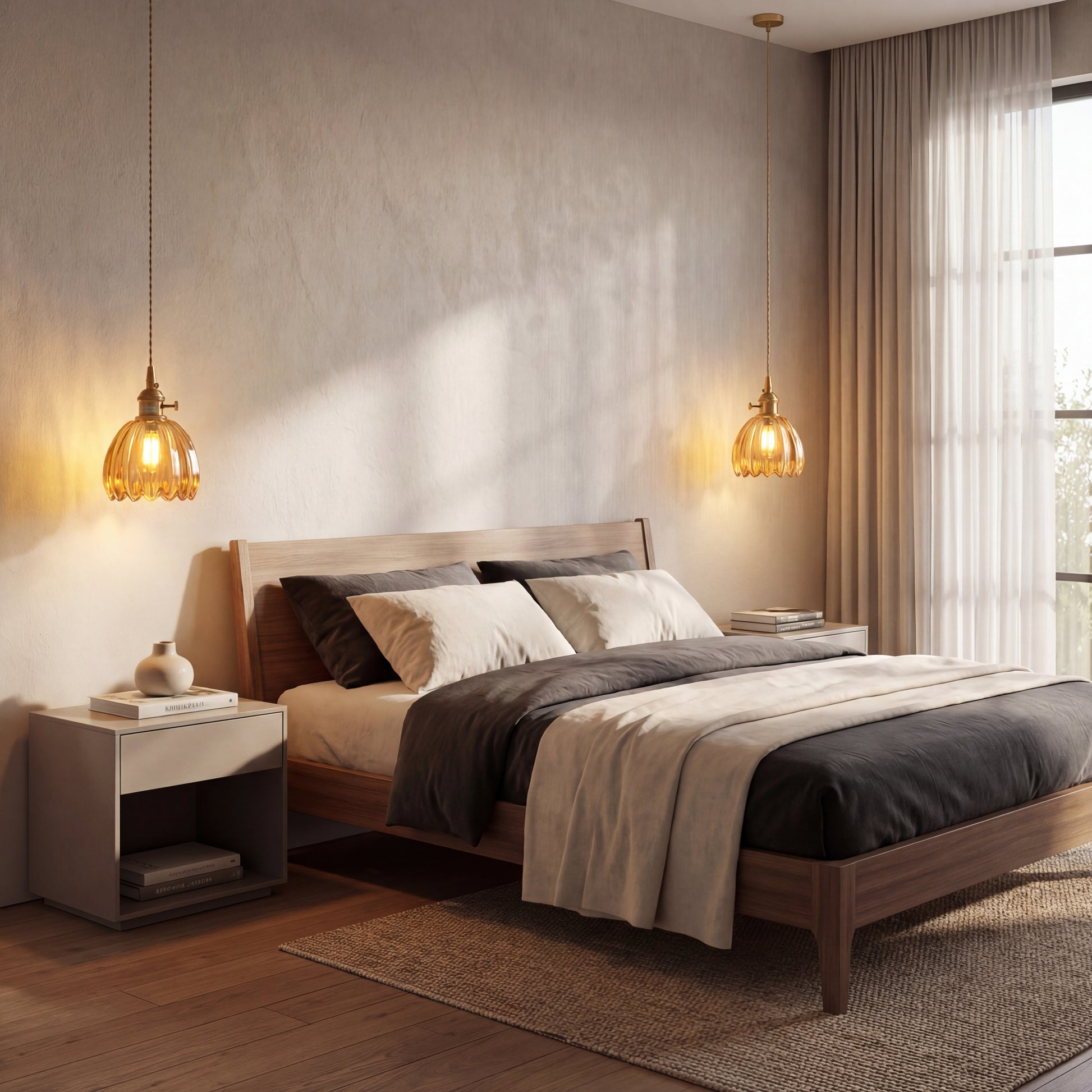 Japanese Glass Pendant Light er designet til at afgive en varm, behagelig glød, der fylder rummet uden at være hård ved øjnene. Uanset om du nyder middagen ved køkkenbordet eller slapper af i soveværelset, skaber denne lampe den perfekte atmosfære.