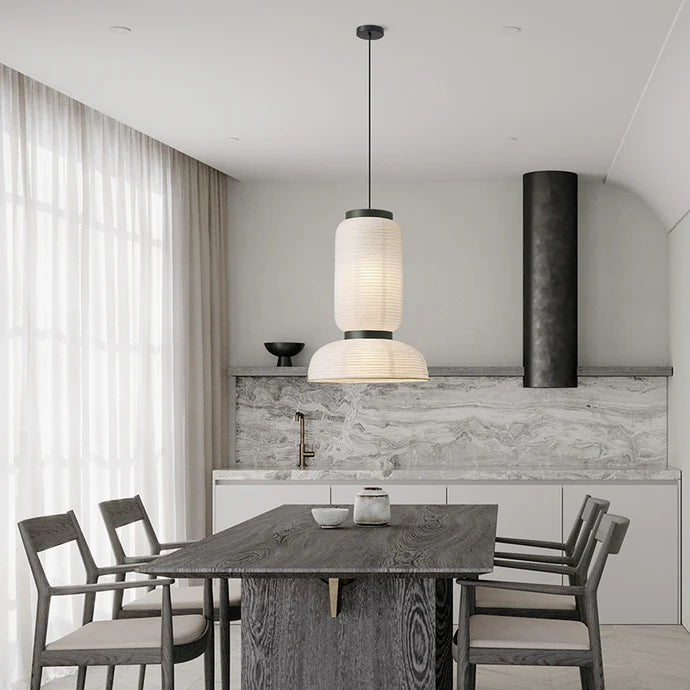 Den japanske Wabi Sabi-pendellampe er designet til at afgive et varmt, behageligt lys, der fylder rummet uden at være hårdt for øjnene. Uanset om du nyder middagen ved køkkenbordet eller slapper af i soveværelset, skaber denne lampe den perfekte atmosfære.