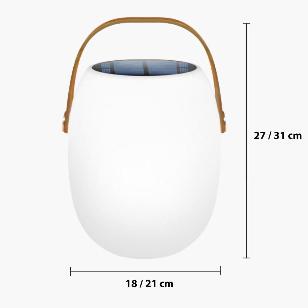 Den bærbare terrasse-solcellelampe udsender et varmt, behageligt lys, der fremhæver dit udendørsområde uden at være hårdt for øjnene. Den er designet til at oplyse trapper, stier og terrasser på en blid måde og skaber en indbydende og sikker atmosfære efter mørkets frembrud.