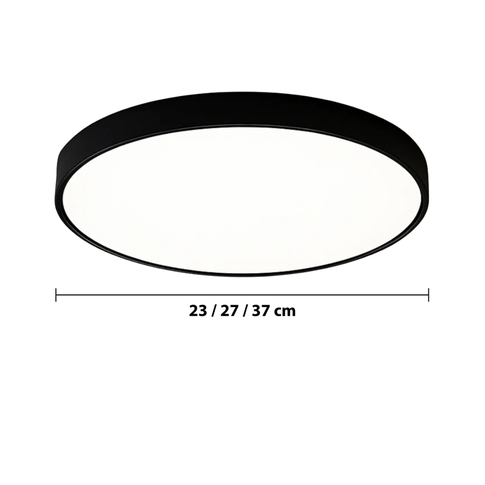 Nej, den ultratynde loftslampe kan ikke dæmpes. Den har et fast lysdesign med en trefarvet belysningsfunktion, så du kan skifte mellem varmt hvidt, neutralt hvidt og koldt hvidt lys. Dette gør det nemt at tilpasse stemningen til forskellige stemninger eller omgivelser, samtidig med at belysningen forbliver ensartet.